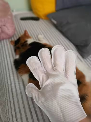 Sätt på handsken och torka, ditt husdjur upplever det som beröring och klappning.